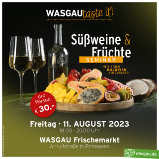 20. Juli 2023 WASGAU taste it! Süßweine & Früchte - so lautet das Thema unseres aktuellen Weinseminars mit Verkostung am 11. August 2023...