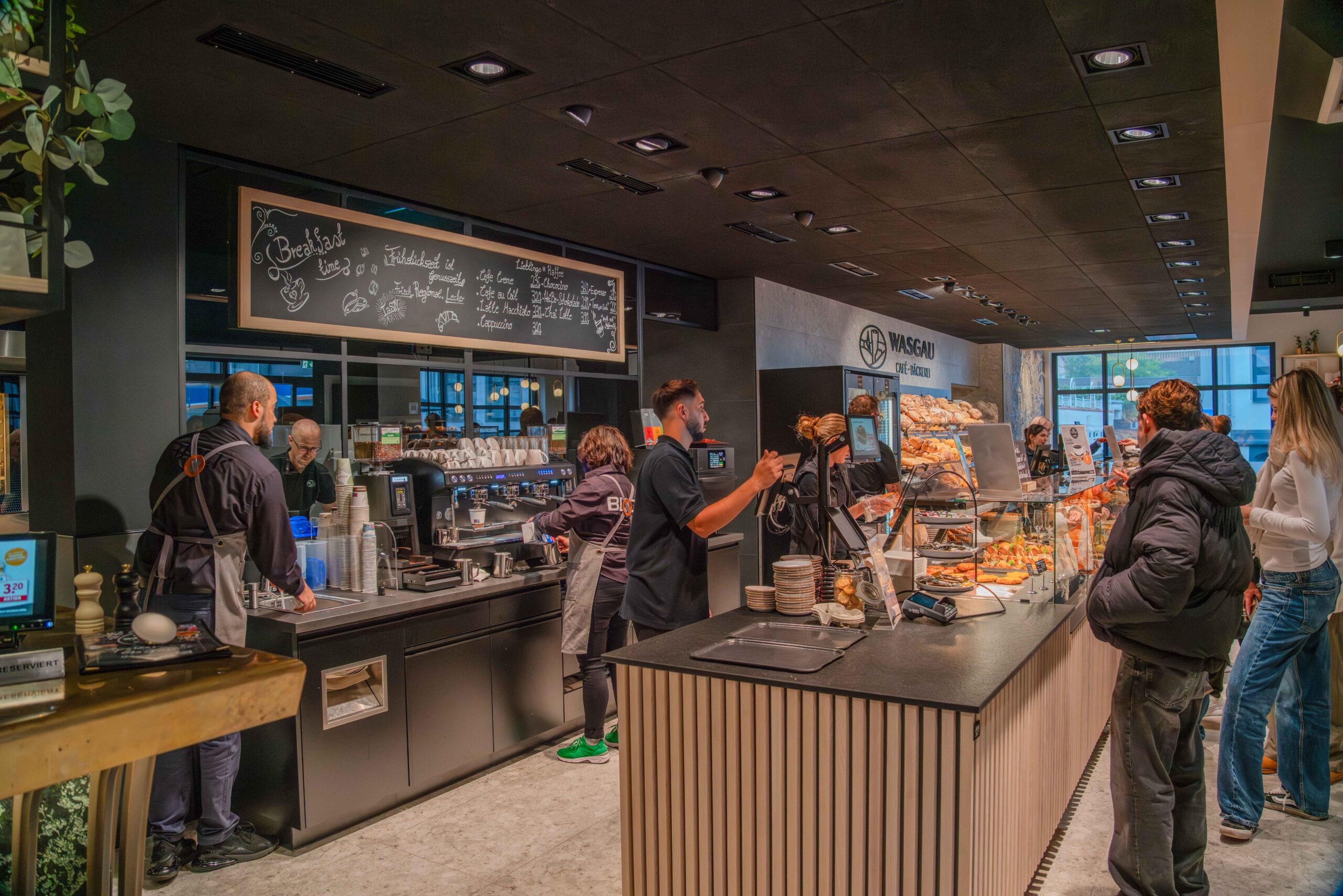 Pirmasens, 30. September 2025. Leckere Back- und Konditoreiwaren aus handwerklicher Herstellung der WASGAU Bäckerei und Konditorei erhalten Kunden jetzt auch im Zentrum von Pirmasens. Im neu errichteten Gebäudekomplex „Höfle-Eck“ eröffnet die WASGAU AG – vor 100 Jahren in der westpfälzischen Stadt gegründet und dort seither mit Hauptsitz und drei Frischemärkten ansässig – am Dienstag, 7. Oktober 2025, als Erster der Mieter ihre nunmehr sechste Stand-alone-Bäckerei. Der stylische Neubau in der Höfelsgasse unterstreicht dabei den engen Bezug zur Region und auch zum Image von Pirmasens als traditionsreicher Schuhstadt. Insgesamt 73 Sitzplätze sind vorhanden sowie ein kleiner Sitzbereich außen für den Genuss vor Ort. Täglich frisch gibt es zahlreiche Brot- und Brötchensorten, außerdem süße Teilchen, verschiedene Kuchen und sowohl Tortenklassiker als auch hauseigene Neukreationen, hinzu kommen kalte und warme herzhafte Snacks. Darüber hinaus wird ein klassischer Mittagstisch mit Tagesessen im vierwöchigen Wechsel angeboten (auch zum Mitnehmen), ergänzt um eine kleine Speisekarte für den ganzen Tag mit Salaten, Pinsas und Vesper-Brettern. Nicht zuletzt können die Gäste morgens aus einer abwechslungsreichen Frühstückskarte ihre Wahl treffen; sie beinhaltet im „WASI style und like“ unter anderem Eierspeisen, Müsli und Lachs. Neben trendigen Kaffeespezialitäten sind weitere kalte und warme Getränke erhältlich – selbstverständlich auch in der To-go-Variante, beispielsweise im nachhaltigen WASGAU-Mehrweg-Becher.